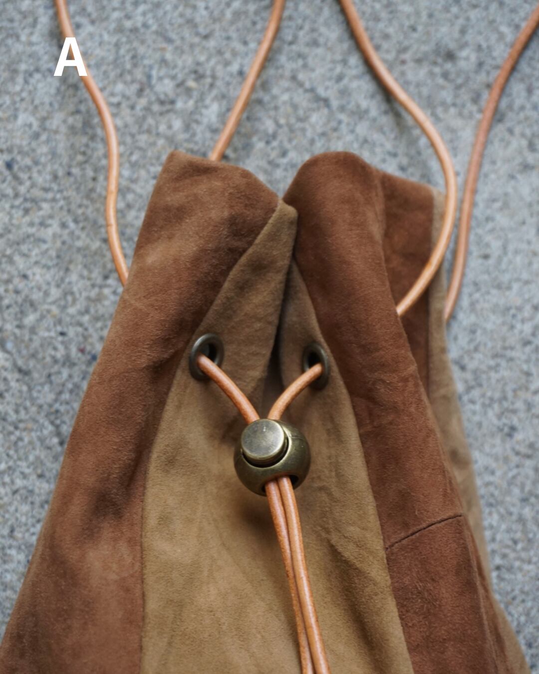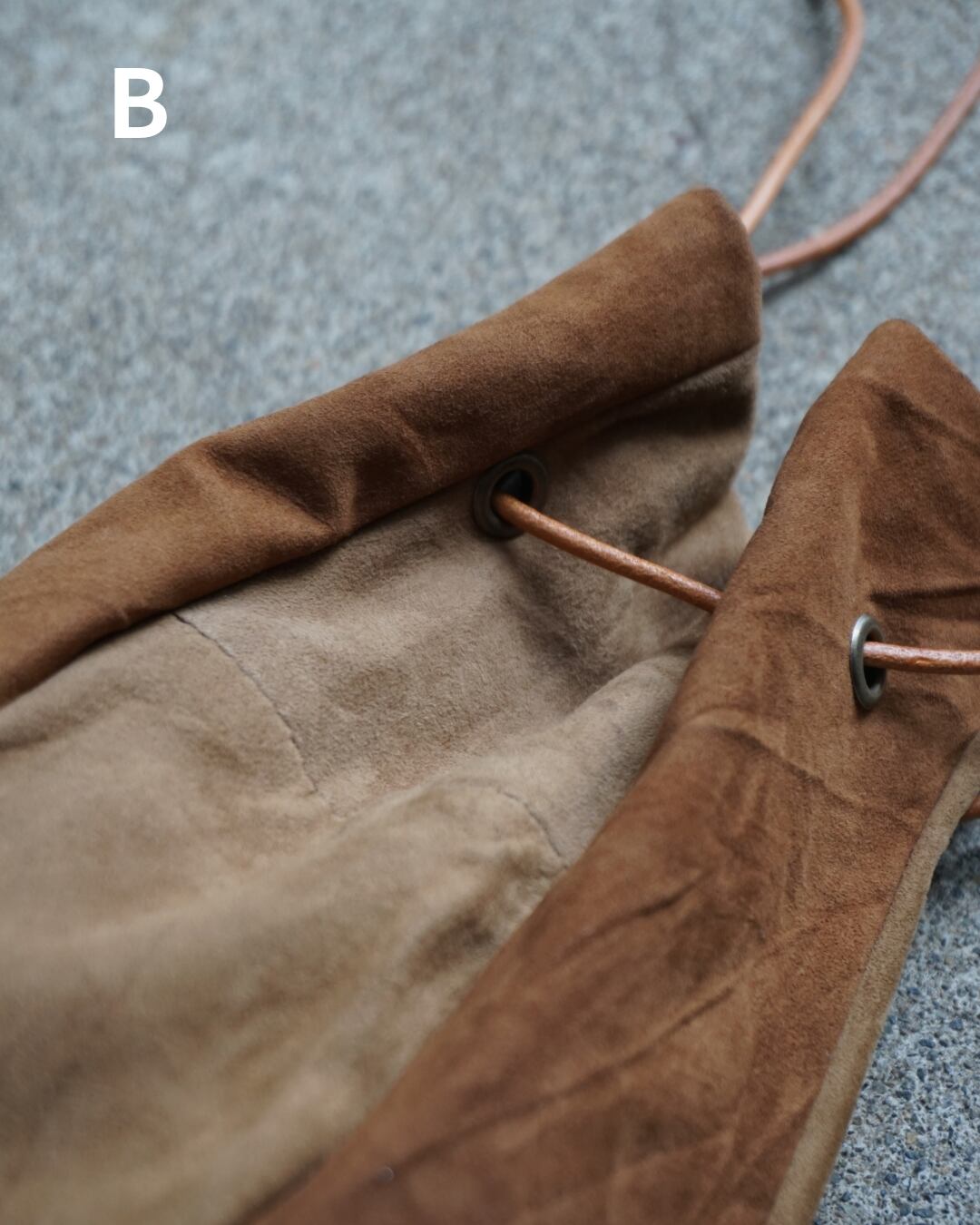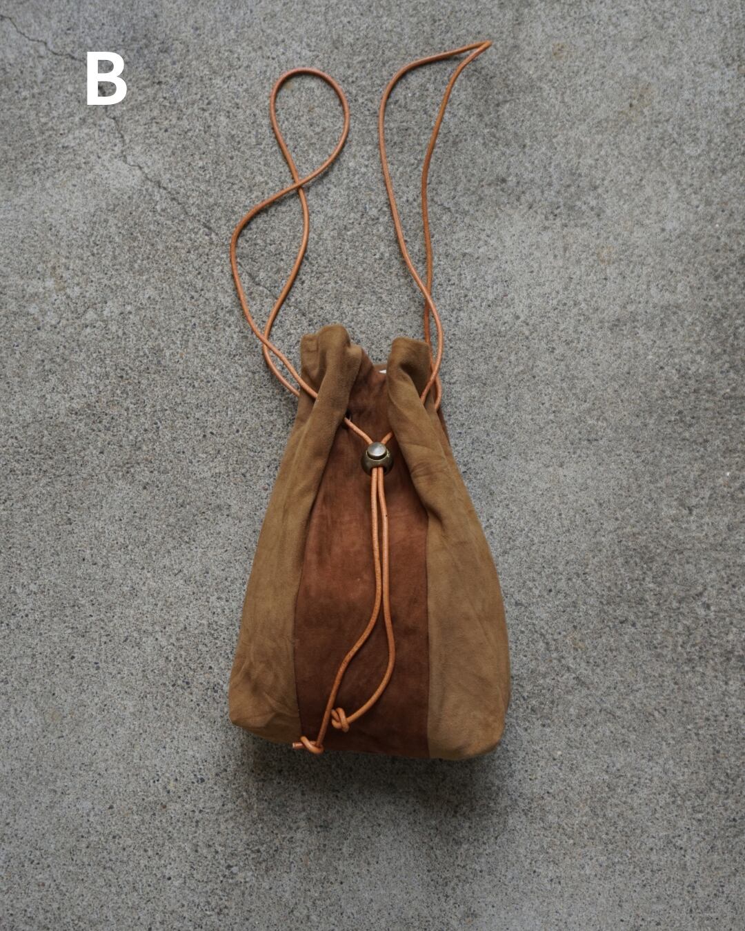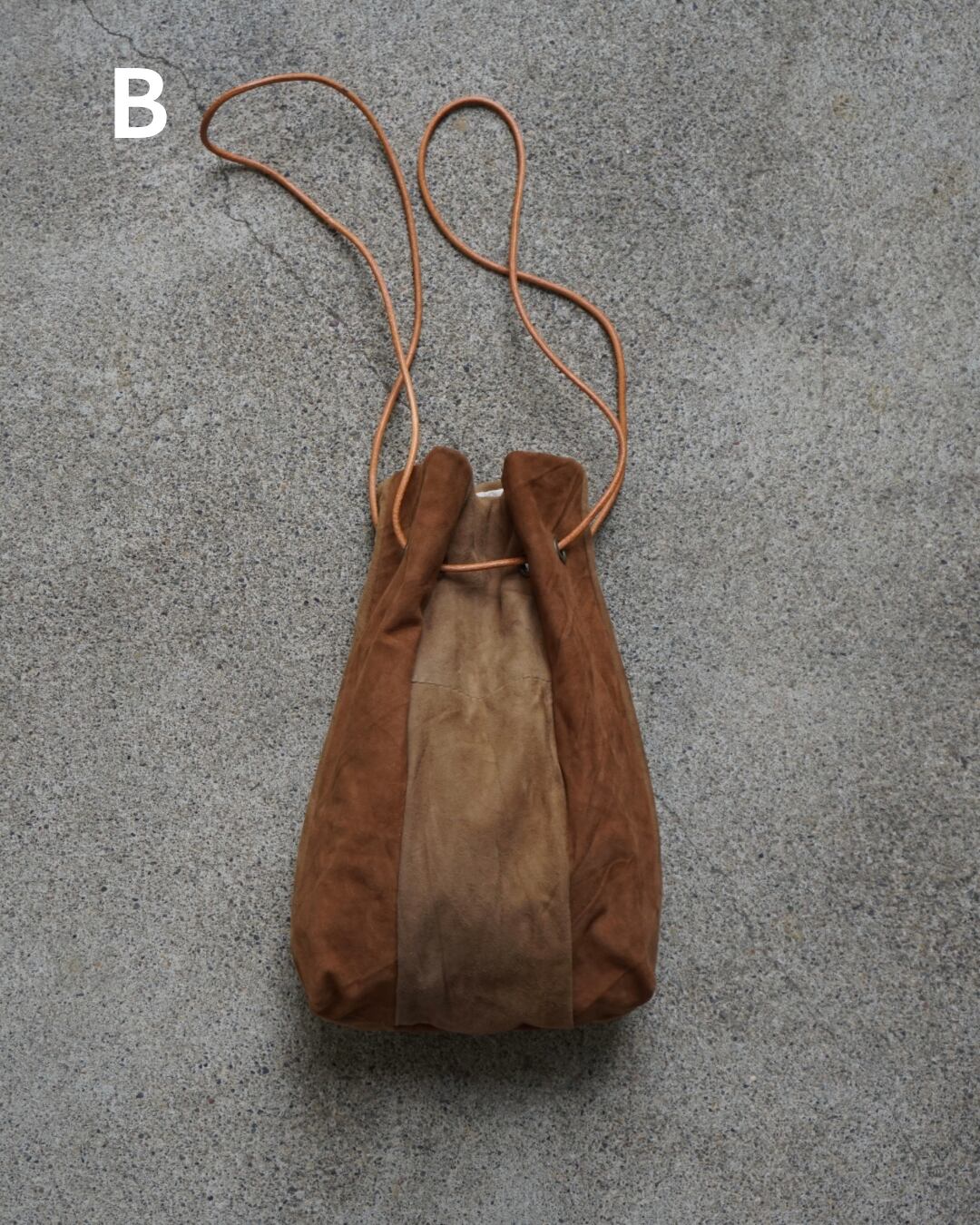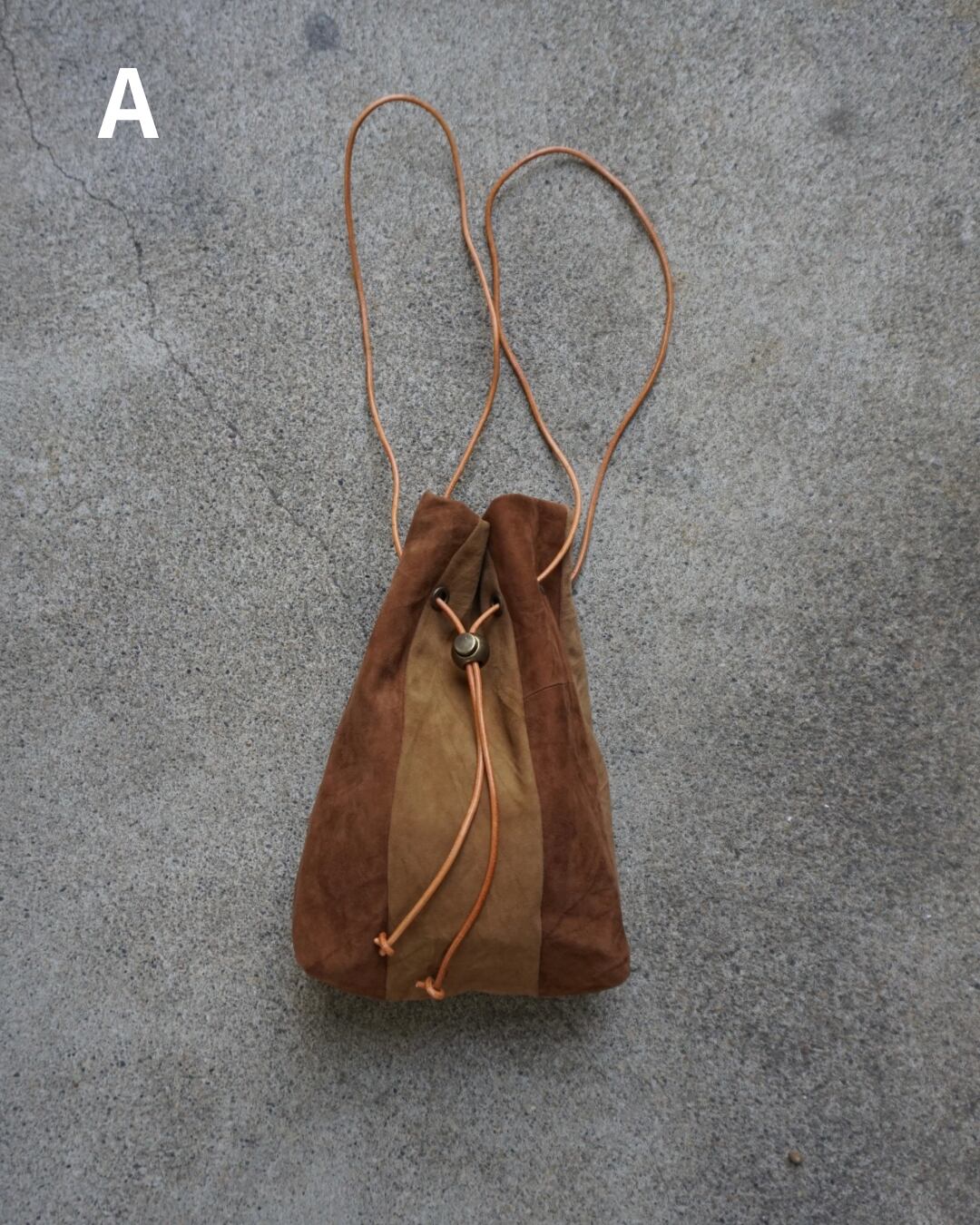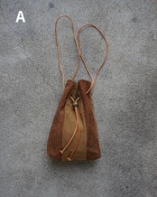 usedのレザー生地をリメイクして製作した巾着バッグ